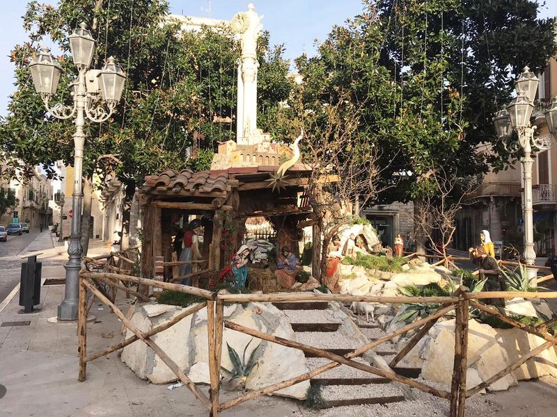 Il presepe artistico di piazza Libertà, che l'amministrazione comunale ha assegnato quest'anno alla associazione sportiva Apulia Trani, nell'ambito del bando Trani t'incanta, è tributo alla storica città lucana con cui Trani è istituzionalmente gemellata attraverso la recente stipula di un protocollo d'intesa.