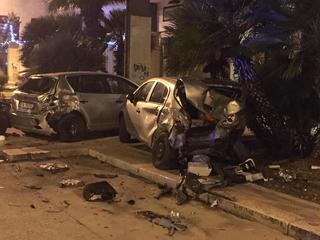 Il giovane, perdendo il controllo della vettura che conduceva, ha urtato e danneggiato in serie almeno altri quattro veicoli parcheggiati, prima di terminare la sua corsa su un impianto pubblicitario nell'aiuola spartitraffico.