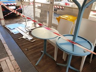 Il giovane conducente di un veicolo, che da piazza della Repubblica marciava in direzione Barletta, ha invaso la corsia opposta urtando lo spigolo esterno del dehor del bar situato nei pressi dell'incrocio con via Fusco.