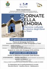 In occasione della Giornata della Memoria, la F.I.D.A.P.A. - sezione di Trani, in collaborazione con l’Assessorato alle Culture, ha voluto proporre un percorso di consapevolezza, sensibilizzazione e tutela del territorio attraverso la riscoperta delle radici storiche e culturali ebraiche della Città di Trani.