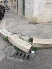 Fatto sta che l’evoluzione di questo incrocio è tutta in divenire e viene da pensare che, forse, la particolare condizione del marciapiede, raffigurata in foto, non sia stata colta dagli amministratori della città oppure che la sua sistemazione non rientri tra le loro priorità.