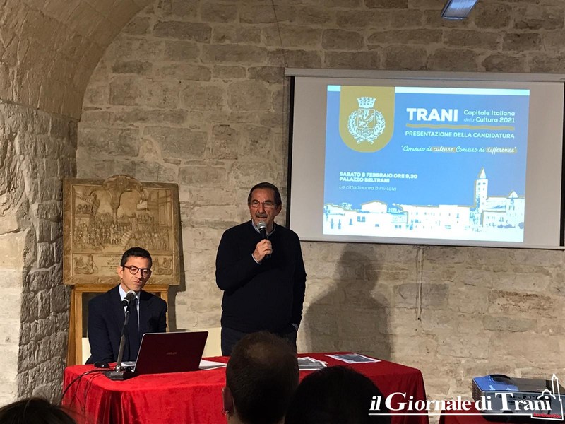 Tanto entusiasmo da parte del primo cittadino che spera di portare Trani tra le prime dieci candidate su 44 città. E chiede a tutti l’apporto di idee originali che saranno inserite nel dossier: «Chiediamo l’apporto di idee di chiunque entro il 20 febbraio alle ore 23.59. Non nego che speriamo anche nella forza economica dei privati proprio come successo con Parma (capitale della cultura 2020, ndr)».