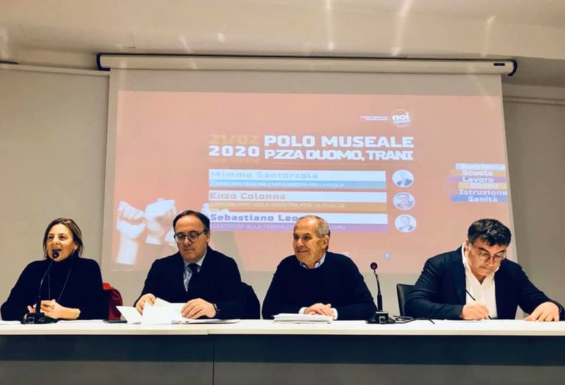 «Abbiamo deciso di mostrare alla città di Trani il lavoro certosino e i risultati ottenuti da “Noi a sinistra per la Puglia” in questi cinque anni al consiglio regionale. È stato un lavoro lungo che ci ha permesso di raggiungere gli obiettivi preposti». Queste le parole del consigliere regionale Domenico Santorsola che ieri sera al Polo Museale ha presentato i provvedimenti messi in atto e quelli futuri nel governo della regione. Insieme a lui presenti anche Enzo Colonna, capogruppo di “Noi a sinistra per la Puglia”, e Sebastiano Leo, assessore alla formazione e al lavoro.