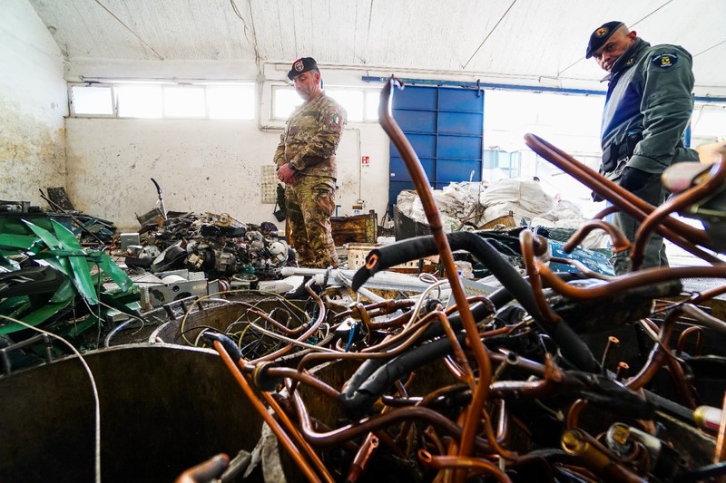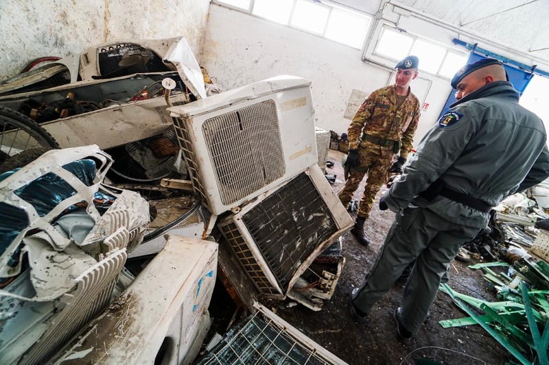 Sempre nel Comune di Sant’Anastasia, sono state sequestrate un’autocarrozzeria per camion e tir all’interno della quale venivano svolte attività di lavorazione e riparazione di veicoli senza le specifiche autorizzazioni; venivano inoltre rinvenute ingenti quantità di componenti meccaniche, rottami, parti di motori e filtri, esposti agli agenti atmosferici senza alcuna tracciabilità nonchè un’attività di trasformazione e lavorazione di rottami metallici e un deposito abusivo di rifiuti speciali e pericolosi.