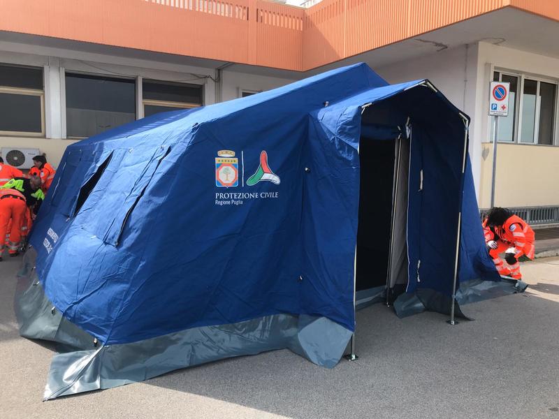 Nelle tende pre-triage saranno al lavoro operatori dei Pronti Soccorso, debitamente minuti di dispositivi individuali di protezione, per valutare tutti i casi con sintomatologia e pre-condizioni (provenienza dalle regioni del nord segnalate) che, sulla base delle linee guida emanate dalla Regione Puglia, devono essere sottoposti a controllo e monitoraggio. L' allestimento delle tende per il pre-triage risponde all'esigenza di limitare quanto più possibile la diffusione del virus e di proteggere pazienti e operatori presenti nelle aree di emergenza-urgenza.