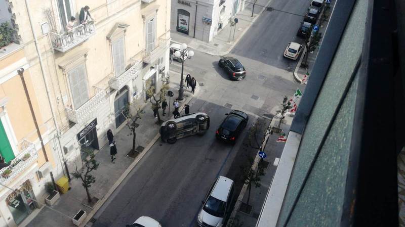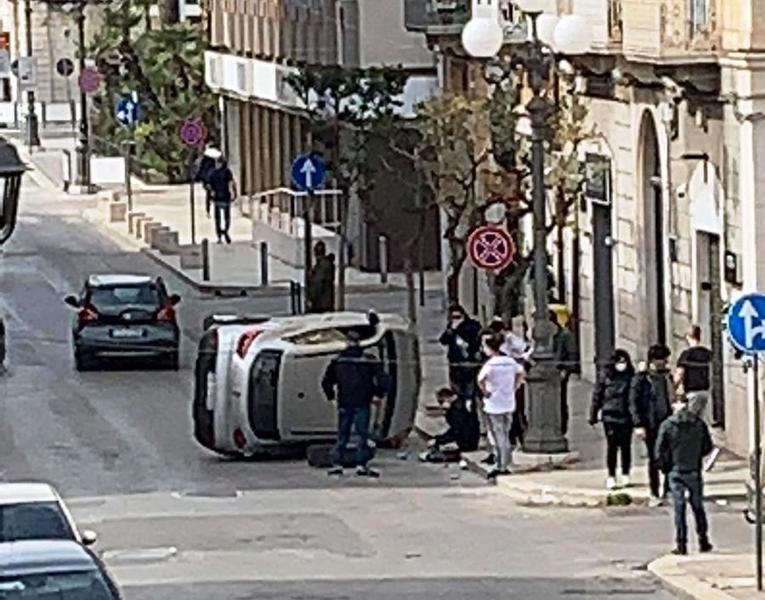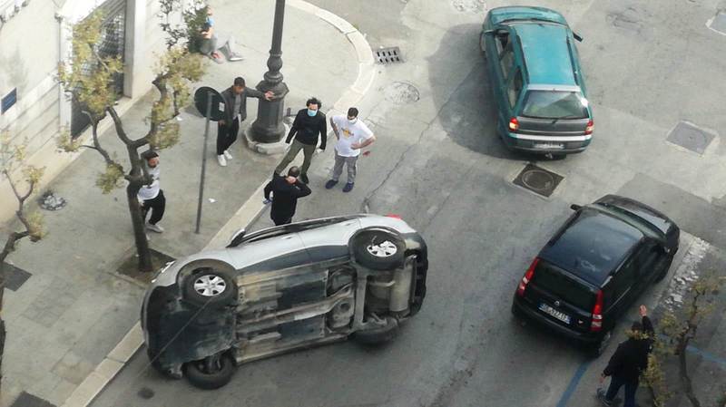 Un'auto si è ribaltata in via Aldo Moro, intorno alle 13.30, per cause ancora da accertarsi, probabilmente dopo avere bruscamente sterzato per evitare l'impatto con un veicolo che svoltava a sinistra. Gli occupanti fortunatamente ne sono usciti illesi, nonostante la vettura sia rimasta semi distrutta.