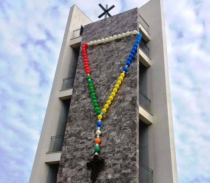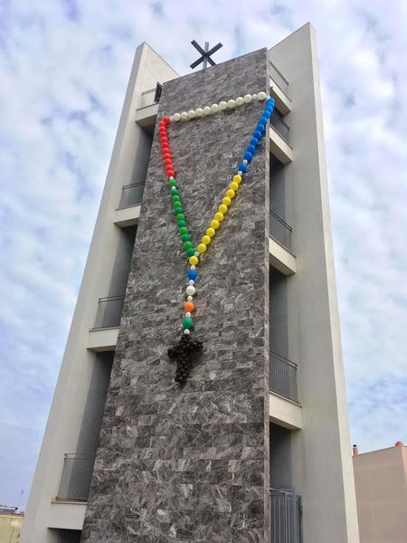 «Che non sia solo un segno esteriore, ma possiamo sempre più aggrapparci a Maria, con questa preghiera potente, in questo momento così drammatico». A parlare è don Dino Cimadomo, parroco di San Magno, sul cui campanile è stata collocata una grande corona del rosario formata di palloncini colorati.