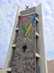 Rappresenta un segno di speranza e di pace, richiamando i colori dell'arcobaleno, ma soprattutto un contatto simbolico tra la parrocchia ed il quartiere, proprio a distanza di un mese dalla dedicazione della chiesa parrocchiale «che purtroppo ammette – don Dino - non stiamo vivendo come vorremmo».