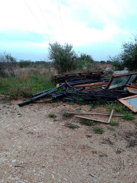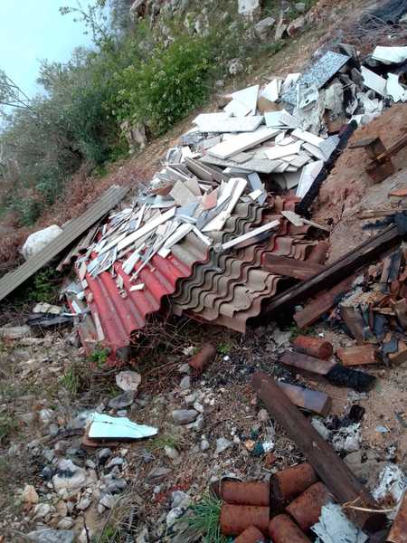 A circa 800m in linea d’aria dalla discarica di Puro Vecchio, incivili hanno abbandonato porte di legno, tubi di plastica, pedane, scarti di materiale lapideo e soprattutto lastre di eternit. Tale materiale rilascia nell’atmosfera fibre di amianto particolarmente pericolose per la salute pubblica.