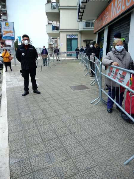 Secondo giorno di ritiro delle pensioni e alla posta centrale di Trani in via Giovanni Bovio tutto procede nel rispetto delle distanze di sicurezza.