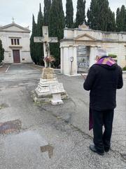 «Oggi - così si è espresso lo stesso Arcivescovo nel momento di preghiera dato in diretta televisiva nel pomeriggio, in cui ha richiamato le ragioni del gesto compiuto stamane nei cimiteri - tutti i Vescovi italiani ci siamo recati ai nostri cimiteri per un momento di raccoglimento, di preghiera e benedizione. Abbiamo affidato alla misericordia del Padre tutti i defunti di questa pandemia, ed espresso la vicinanza della Chiesa a quanti sono nel pianto e nel dolore. È stato, questo, come sottolinea lo stesso comunicato CEI, “il Venerdì della Misericordia” della Chiesa italiana; un venerdì di quaresima, nel quale con lo sguardo rivolto al Crocifisso, il nostro Salvatore, abbiamo invocato la speranza consolante della risurrezione».