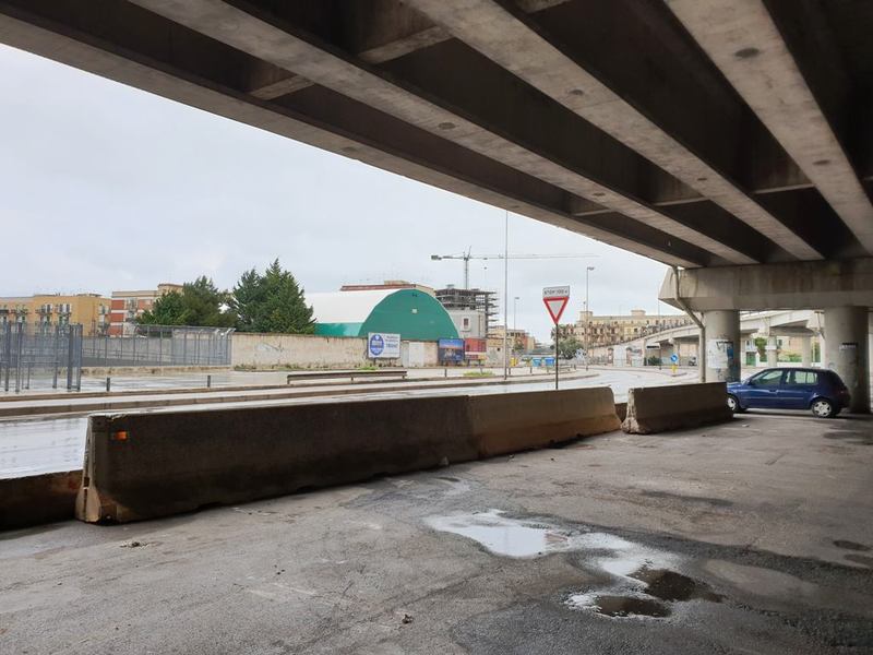 Non hanno nulla a che fare con l'emergenza sanitaria in corso i new jersey sistemati in serie al di sotto del viadotto della strada statale 16 bis, all'altezza dello svincolo Trani centro, di fronte alla tribuna dello stadio comunale lungo via Superga.
