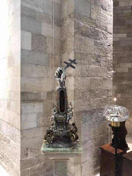 Resterà esposta per tutto il periodo della quarantena da Covid19 la reliquia del Braccio del patrono della città San Nicola Il Pellegrino in Cattedrale.