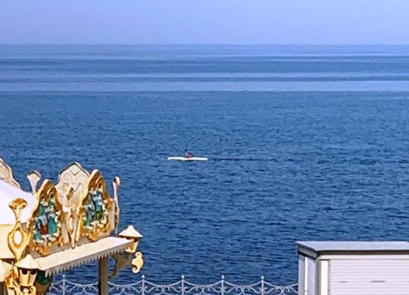 L’uomo, incurante dei divieti, si è infilato nello scafo, ha impugnato la pagaia e ha attraversato uno specchio d'acqua molto ampio antistante il lungomare.