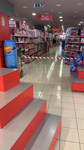 Come si può vedere dalle foto, i reparti dedicati ai giochi restano chiusi. La normativa, a proposito, non è molto chiara: i giocattoli devono essere considerati come prodotti venduti nei "negozi per neonati e per i bambini”?