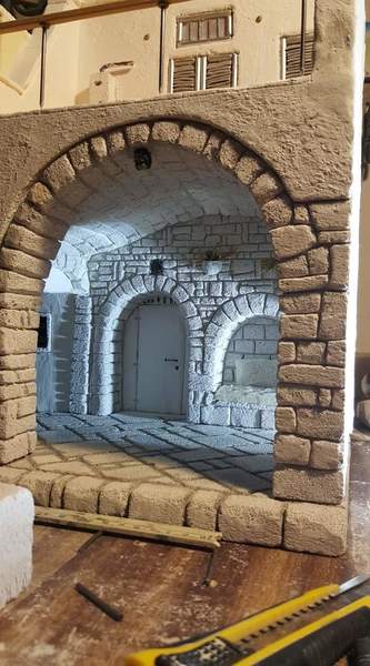 Armato di martello, tronchesina, punteruoli, seghetti e altri attrezzi da lavoro, Savino ha dato vita ad un piccolo capolavoro. Gli archi e i muri in pietra, le ringhiere e le persiane delle abitazioni sono così realistici che sembra poterli toccare con mano.