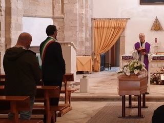 Ad officiare il rito funebre è stato don Mimmo De Toma: «La presenza del sindaco è quella di tutta una città che oggi sarebbe stata qui per salutare una persona e un professionista esemplare. Il Signore gli dia la pace riservata ai giusti». La scelta è ricaduta sul Vangelo di Matteo 25,40 dove il Signore, rivolgendosi ai giusti, disse loro: “In verità vi dico: ogni volta che avete fatto queste cose a uno solo di questi miei fratelli più piccoli, l'avete fatto a me".