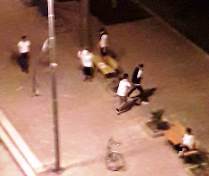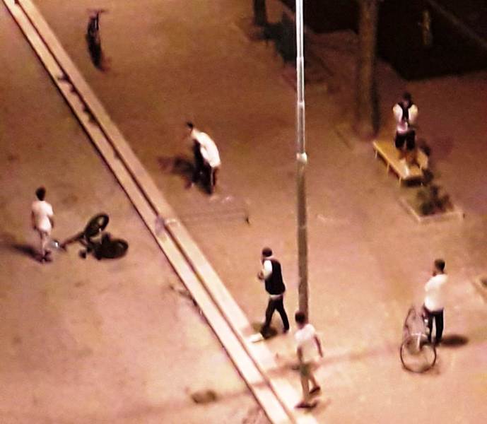 Lo squallido spettacolo è iniziato intorno alle 20 con una partita di pallone e qualche maldestro tentativo di arrampicarsi sugli alberi, il tutto corredato da schiamazzi e linguaggio scurrile e sotto gli occhi increduli di genitori e bambini dai balconi.