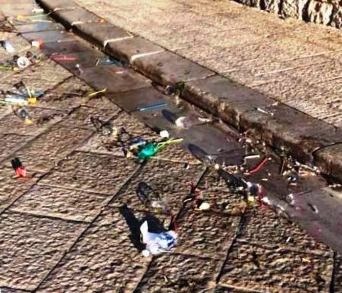 Purtroppo, in molti hanno mostrato grande inciviltà sporcando la città in maniera a volte impressionante, come dimostrano le foto delle bottiglie abbandonate sul parapetto del piazzale del monastero di Colonna (si ringtrazia per la foto Susanna Ferrara), oppure quelle che i residenti di vico San Basile si sono ritrovati sotto i piedi uscendo da casa, insieme con sigarette, fazzoletti sporchi e resti di consumazioni.