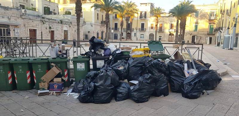 Tappezzato di rifiuti il porto, stracolmi di bottiglie i cestini della villa comunale, sporchissima piazza Teatro. Qui gli esercenti hanno depositato una massa senza precedenti di rifiuti, segno del fatto che i locali hanno lavorato tantissimo e, purtroppo, non si è ripreso a fare la raccolta differenziata porta a porta, che pure è prevista per il settore della ristorazione in quella zona di città.