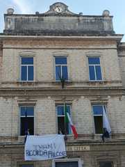 Uno striscione contro la mafia il Comune lo aveva già esposto, ma non sul prospetto di Palazzo di città bensì dal sagrato della cattedrale al termine della marcia per la legalità del 4 marzo 2017.