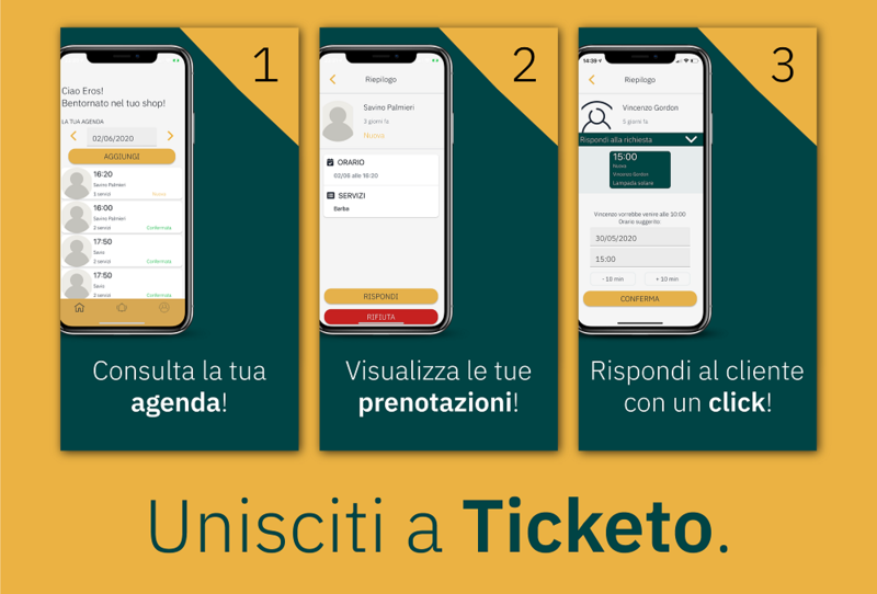 Savio Palmieri ci spiega come funziona nello specifico questa applicazione, scaricabile sul Play Store e Apple Store: «Ticketo è formata da due sezioni: da una parte ogni attività commerciale può avere uno shop online che mostra dati sui servizi che offre, dall’altra ogni consumatore può trovare l’attività commerciale che più soddisfa i suoi requisiti e le sue esigenze e prenotare una prestazione. L’app, quindi, funziona sia come agenda digitale per il venditore, sia come strumento di prenotazioni per il cliente che avrà il suo biglietto digitale a portata di click».