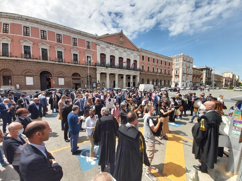 Al centro dell’iniziativa, organizzata dall’Ordine degli Avvocati di Bari insieme all’Organismo Congressuale Forense e con l’adesione degli Ordini dei distretti di Trani e Foggia, la paralisi della Giustizia, dettata da una bulimia normativa e regolamentare che ha prodotto centinaia di prassi diverse, rendendo incomprensibile l’esercizio delle attività giudiziarie e impossibile una reale ed effettiva ripresa. «Cosicché oggi – ricorda Stefanì - a distanza di oltre tre mesi dalla sospensione avvenuta a inizio marzo e a circa un mese dalla presunta riapertura dei Tribunali, nelle aule delle Giustizia barese si celebrano pochissimi giudizi, meno del 30%, con i diritti di cittadini e imprese in attesa, ostaggio di scelte inadeguate oltre che della deprecabile situazione in cui versa la nostra edilizia giudiziaria. In questo periodo, oltre al danno inferto dalla pandemia alla macchina della Giustizia, il nostro territorio registra la beffa dell’arresto dell’iter per la realizzazione del nuovo polo giudiziario. Siamo consapevoli che dal 20 gennaio, quando al Ministero della Giustizia si tenne l’incontro per avviare concretamente le relative attività, le priorità siano cambiate; tuttavia, è necessario rimboccarsi le maniche e lavorare ancora più duramente per dare quanto prima al foro barese dei luoghi degni per celebrare la Giustizia».