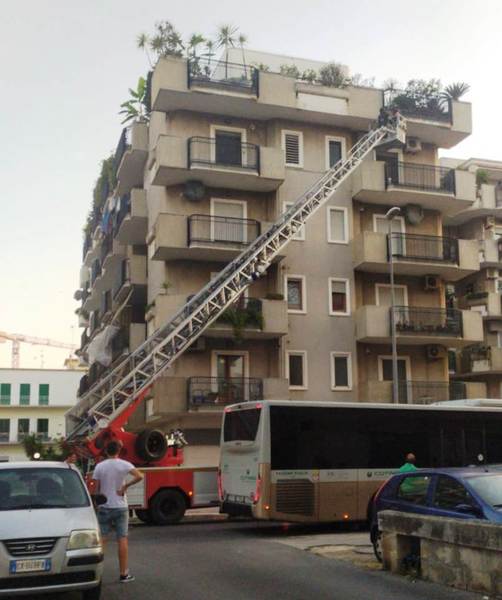 I pompieri hanno messo in sicurezza la zona con del nastro segnalatore, anche e soprattutto spicconando il balcone dal quale I frammenti sono caduti sulla pubblica strada.