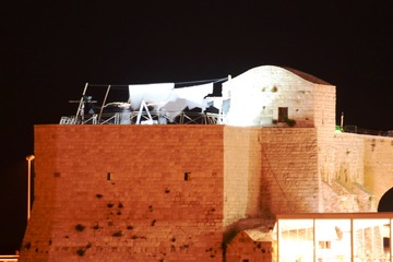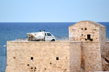 La sommità del fortino della villa comunale trasformata per mezza giornata in un set. È questo il motivo per cui i giardini pubblici sono rimasti chiusi dal pomeriggio di sabato scorso fino alla mezzanotte, che poi è il classico orario di chiusura.