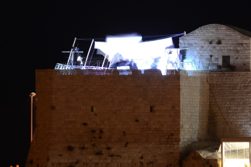 Infatti, in cima alla chiesa di Sant'Antuono è stato realizzato uno spettacolo di cui, allo stato, non si conosce nulla se non il fatto che abbia richiesto l'interclusione dell'intera villa comunale al pubblico per effetto di un'ordinanza del sindaco, Amedeo Bottaro.
