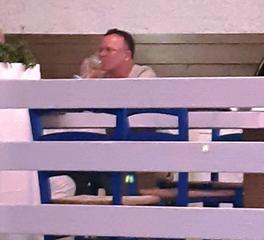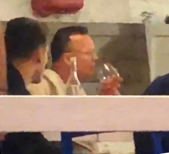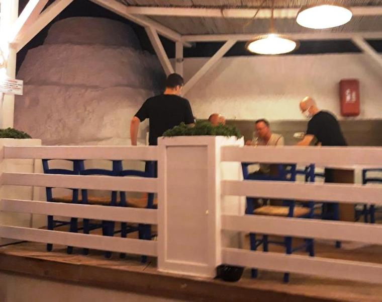 Voleva fortemente una cena in riva al mare sotto il cielo stellato e illuminato dalla luna piena. Così ha scelto un locale del monastero di Colonna per trascorrervi la domenica sera. Inizialmente si è intrattenuto con le persone che erano con lui, poi è stato circondato dai fan e non si è sottratto alle foto ricordo.