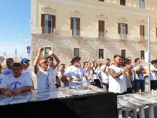 Insieme al numero uno della Sly, il direttore generale De Lorenzis: «Come abbiamo più volte detto, il nostro è un progetto serio e ambizioso; per questo abbiamo ingaggiato calciatori di categoria e anche di quelle superiori. Siamo soddisfatti delle operazioni di mercato e siamo sicuri di andare lontano. Da quattro anni siamo “condannati” a vincere e anche quest’anno saremo abituati a questa pressione. La piazza ha risposto con entusiasmo e non abbiamo dubbi: la gente di Trani sta dalla nostra parte».