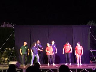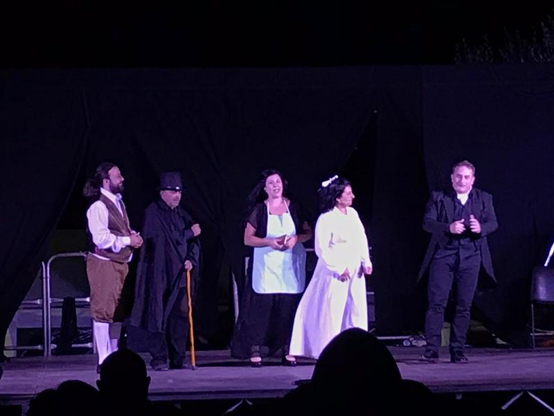 La serata teatrale è stata un omaggio ai grandi attori della scena comica italiana come Lino Banfi in “Vieni avanti cretino” e Gigi Proietti in “La signora delle camelie”. Molto apprezzati dai presenti gli sketch e gli intermezzi musicali come “Memory” dal musical Cats e classici della canzone napoletana come “Dove sta Zazà” di Gabriella Ferri o “A tazza ‘e cafè” di Roberto Murolo. Sul finale, un’intensa interpretazione di Lella Mastrapasqua nei panni di Filumena Marturano dell’indimenticato Eduardo De Filippo.