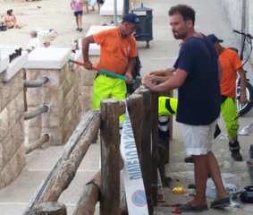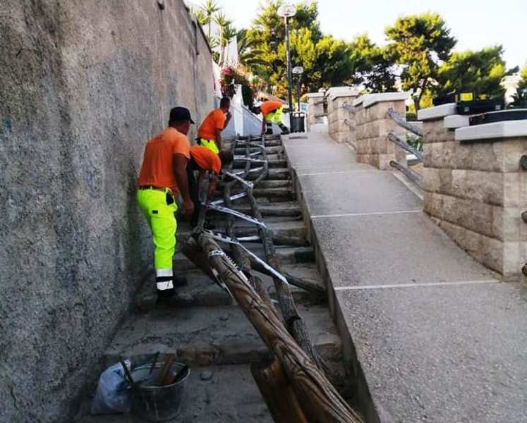 È stato riposizionato e messo in sicurezza i corrimano di legno vandalizzato nella notte fra venerdì e sabato, da ignoti, lungo il vialetto pedonale che collega piazza Marinai d'Italia con il piazzale del Monastero di Colonna. Sono stati gli operatori di Amiu, su richiesta del sindaco, Amedeo Bottaro, e del presidente del consiglio comunale, Fabrizio Ferrante, presente sul posto, ad effettuare l'intervento di ripristino del manufatto.