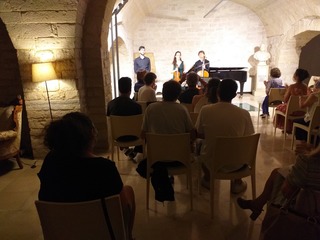 Il Liceo Vecchi, anche in piena estate, prosegue nell’azione di promozione della cultura offrendo ai suoi brillanti studenti neo maturati l’occasione di essere spettatori privilegiati dell’attività cameristica post Covid. Giovedì 6 agosto nella bellissima cornice di Palazzo Beltrani i ragazzi hanno assistito all’esibizione del Trio Enea (NICOLA POSSENTI al pianoforte, ALICE NOTARANGELO al violino e LEONARDO PETRACCI al violoncello), con uno concerto dedicato a Schubert, nell’ambito della rassegna concertistica TRAMONTI MUSICALI, organizzata dalla Fondazione European Arts Academy "Aldo Ciccolini" di Trani e dall'Associazione Auditorium di Castellana Grotte.