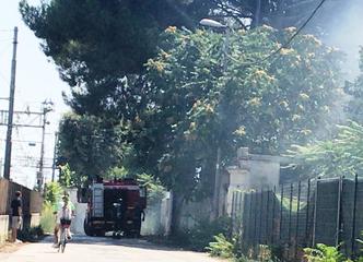 Un incendio è divampato in via Verdi, poco dopo le 12, nell'area intorno al rudere da tempo abbandonato e spesso usato come dormitorio da soggetti senza fissa dimora. Da lì è sollevato del fumo alto e denso, almeno fino all'arrivo dei vigili del fuoco, che hanno presto domato il rogo. Sul posto anche la Polizia locale.