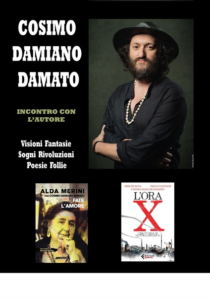Domenica 23 agosto, alle 19, la Libreria Luna di Sabbia di Trani, incontra il regista, poeta e narratore Cosimo Damiano Damato che presenterà i suoi due ultimi libri: il graphic novel L’ora X. Una storia di Lotta Continua (Feltrinelli), scritto con Erri De Luca con i disegni di Paolo Castaldi e “Fate l’amore” una scrittura inedita con Alda Merini (Aliberti). L’evento fa parte del cartellone estivo “Trani incanta” che apre la rassegna “Una luna piena di libri”. A dialogare con Damato il critico e saggista Vito Santoro.
