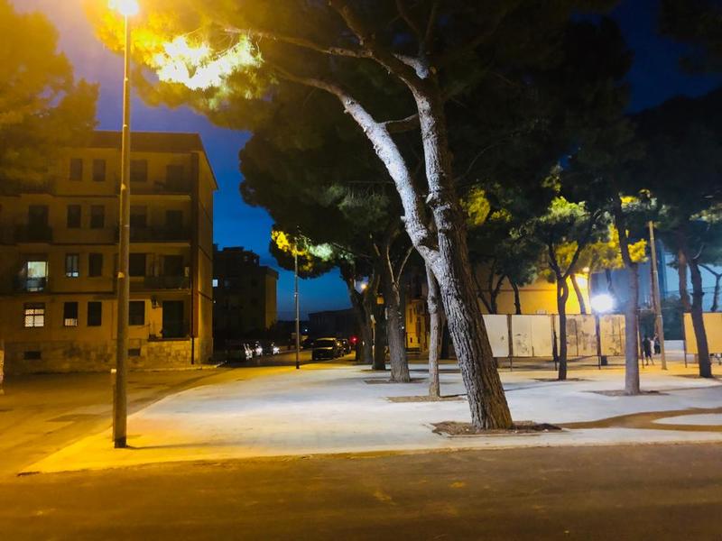 Ecco le prime foto di una piazza Kolbe completamente diversa e rigenerata non solo sotto l'aspetto della pavimentazione ma anche dell'illuminazione (Amet ha installato quattro fari).