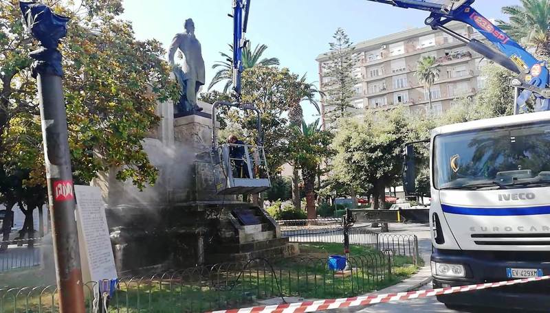 È in corso di svolgimento, a cura di Amu, la pulizia della statua di Giovanni Bovio in piazza della Repubblica, con il relativo basamento. Entrambi furono realizzati, nel 1914, dallo scultore Ettore Ferrari. Da allora mai nessun restauro, ma almeno è arrivata dopo tanti anni di attesa è arrivata, una robusta pulizia. Il restauro era stato oggetto di una gara, bandita nel 2016, con 16 partecipanti ma mai aggiudicata.