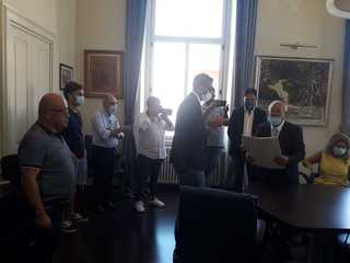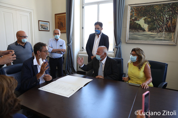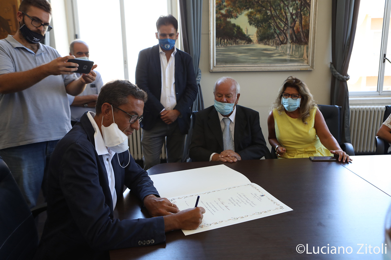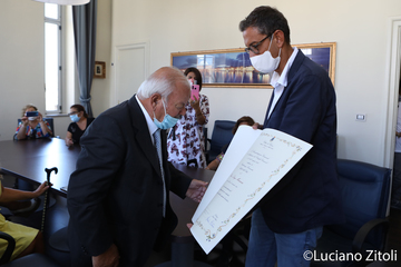 Con lui, nella sala giunta, oltre il primo cittadino e altre figure istituzionali della città, la moglie Angela e le figlie Maria Grazia e Silvia.