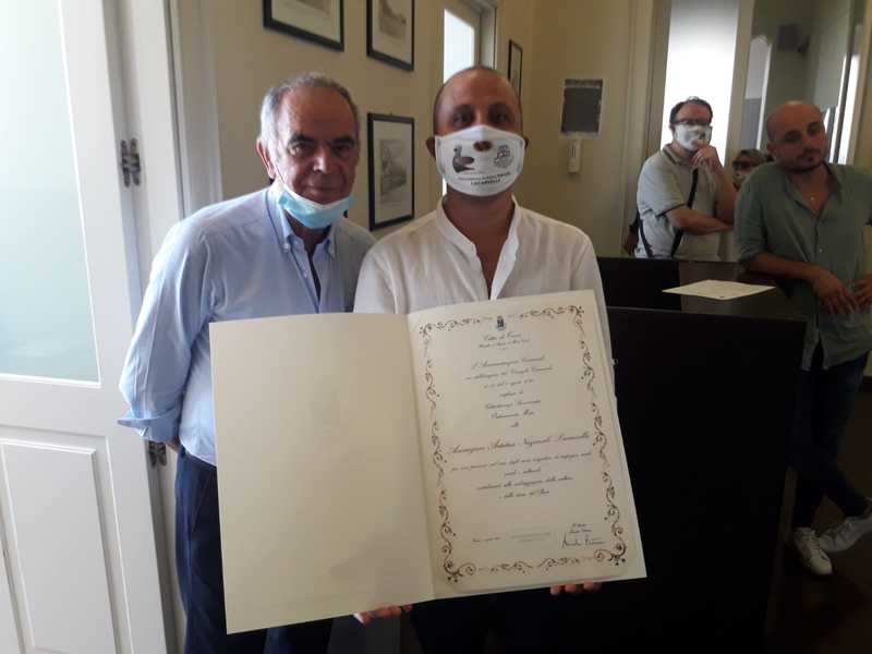 «Per i suoi meriti professionali, essendosi distinto per continuità, dedizione e assoluta capacità lavorativa». Questa è la motivazione con la quale il cavalier Luigi Muciaccia, 90 anni, ha ricevuto la cittadinanza benemerita “Sigillo della città” dal sindaco, Amedeo Bottaro, sulla base della deliberazione del consiglio comunale numero 58 dello scorso 4 agosto 2020.