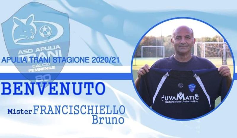 Bruno Francischiello e Patrizia Albrizio saranno, rispettivamente, allenatore e medico sociale dell'Apulia Trani nella stagione 2020-2021, che prenderà il via a settembre con la disputa del girone eliminatorio di Coppa Italia, che comprende anche Catanzaro e Lecce. Sarà il preludio al nuovo campionato nazionale di serie C, girone D, il cui inizio è previsto a metà ottobre.