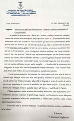 La richiesta, in particolare all'Amiu, era stata che nei tre giorni indicati i suoi operatori passassero a bonificare la piazza soprattutto sui lati adiacenti la chiesa, che presentano in modo particolare questo triste spettacolo: «Tale intervento - sottolineava padre Migliaccio - permetterebbe di rendere un servizio a tutti i cittadini della zona mantenendo alto il buon nome della città di Trani e restituendo alla chiesa del Carmine il suo necessario decoro».