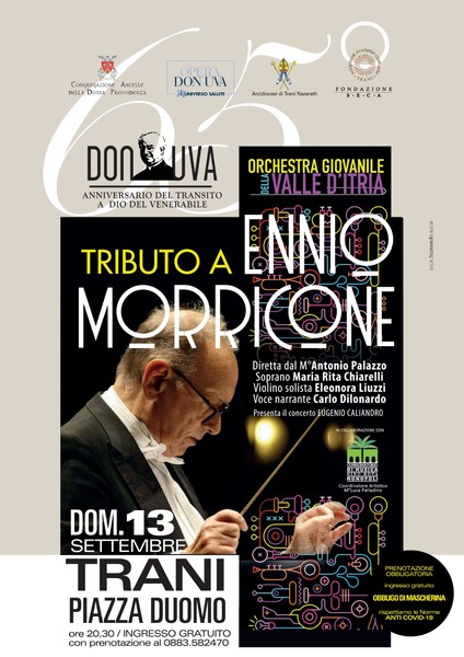 A fine conferenza nella splendida Piazza Duomo alle ore 20.30 in uno scenario unico e inimitabile si terrà il concerto “Tributo a Ennio Morricone” con l’Orchestra Giovanile della Valle D’Itria diretta dal maestro Antonio Palazzo con il soprano Maria Rita Chiarelli, con il violino solista Eleonora Liuzzi e con la splendida voce narrante di Carlo Dilonardo, il concerto sarà presentato da Eugenio Caliandro.