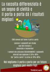 «Abbiamo studiato - scrivono - ci siamo confrontati con gli esperti più autorevoli, abbiamo osservato le realtà più virtuose, per giungere alla conclusione che il sistema del porta a porta sia quello migliore per ottenere risultati concreti in termini di percentuali di differenziata.