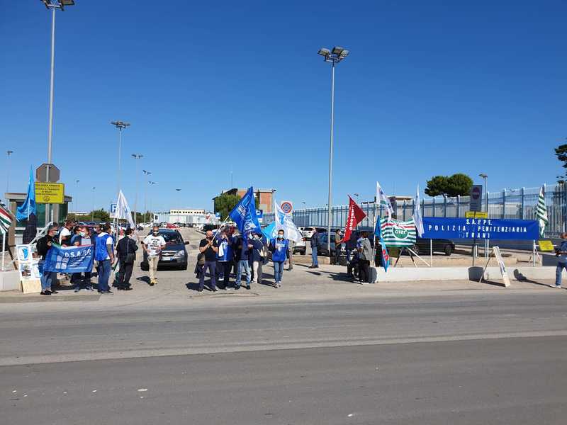 Tutte le sigle sindacali insieme per protestare sulla situazione che si vive all’interno del carcere di Trani e soprattutto contro l'apertura del nuovo padiglione senza la chiusura della sezione blu. È dalle 9 di questa mattina che Sappe, Osapp, Cgil, Cisl, Uil e Uspp si sono riuniti per far sentire la loro voce.
