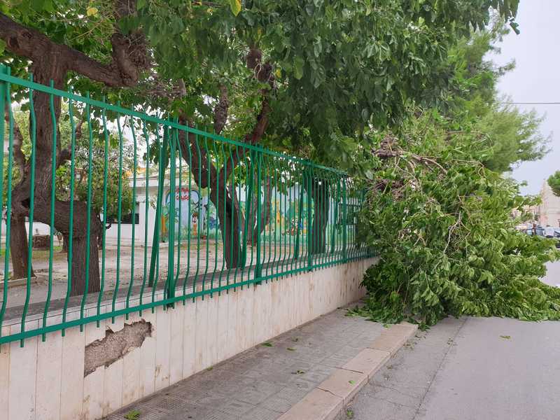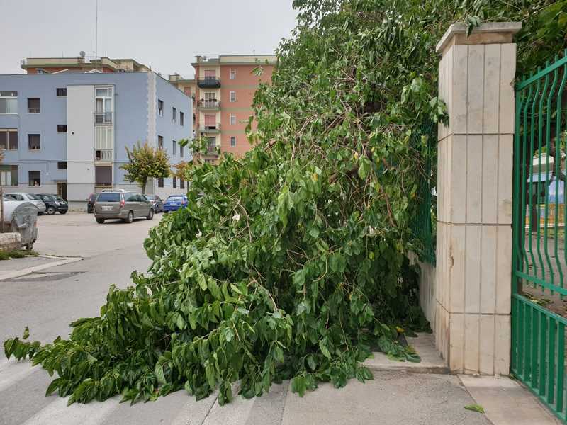 Dopo l’episodio di questa mattina in via Giovanni Bovio, nel pomeriggio un ulteriore distacco di rami è avvenuto all'interno dell'area della scuola elementare Petronelli lungo via Maraldo da Trani. Anche in questo caso nessuna conseguenza per cose e persone. Inoltre, il dirigente scolastico dell'Istituto Pina Tota aveva avvertito che quel ramo si stesse per spezzare e cautelativamente chiamato la polizia locale che è intervenuta sul posto insieme con l'agronomo della società di manutenzione del verde pubblico per la chiusura cautelativa della strada.