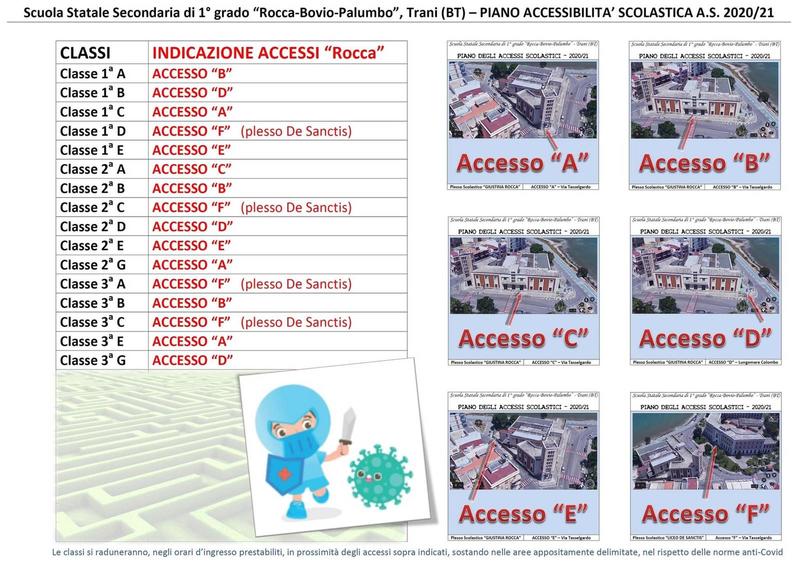 Il piazzale di accoglienza rimane invariato, così come i rispettivi orari di ingresso e uscita. Per l’accesso al plesso, saranno utilizzati i seguenti varchi: 1D: ingresso C 2C: ingresso D 3A: ingresso C 3C: ingresso E. La collocazione degli ingressi è visionabile sulle piante pubblicate sul sito web istituzionale in data 24 settembre 2020.