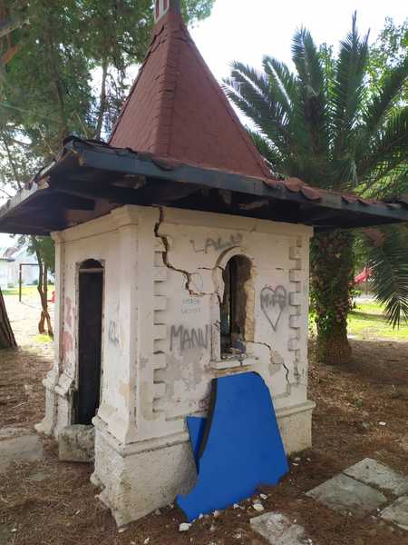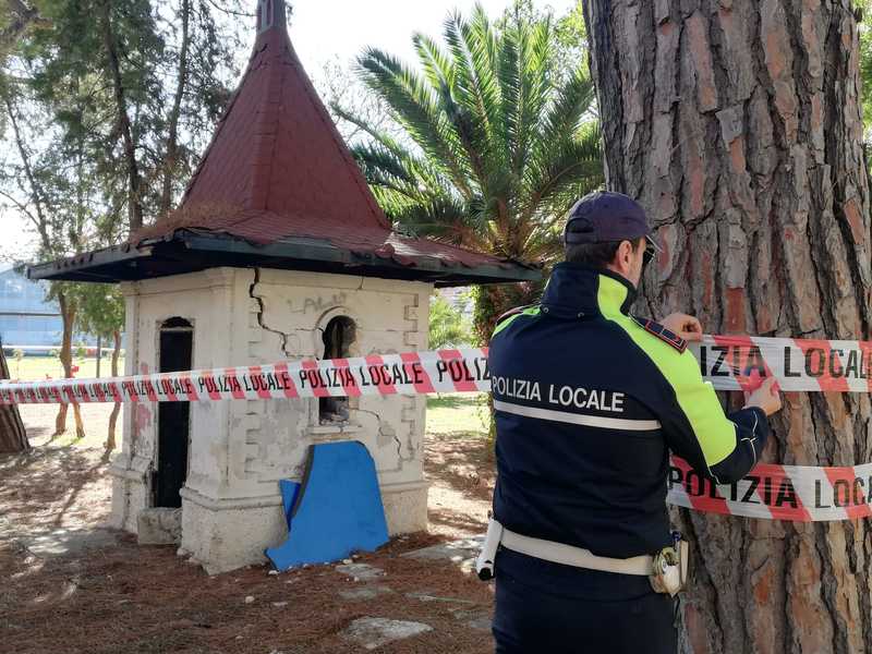 La pioggia dei giorni scorsi ha causato non pochi problemi ad una struttura sita nel parco Giuseppe Petrarota (ex-villa Bini). Come si può vedere dalla foto, si sono verificati problemi di cedimento ed evidenti lesioni che hanno portato la polizia locale a delimitare l'area per questioni di sicurezza. Non si registrano ulteriori danni all'interno del parco.