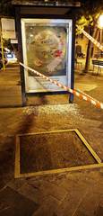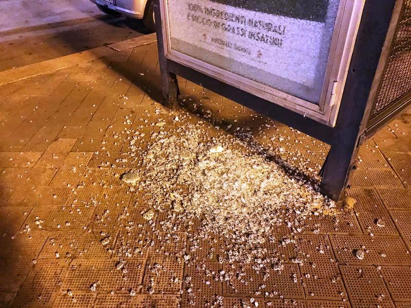 Agli occhi dei passanti si è presentata la stessa scena dei giorni precedenti, con frammenti di vetro sparsi sulla pavimentazione a seguito della violento assalto al manufatto. Come sempre, nel giro di poche ore gli operatori di Amiu hnno ripulito tutto.